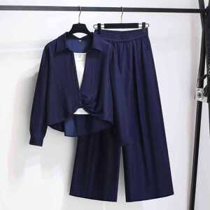 防晒长袖衬衫配吊带阔腿裤子女2025初秋新薄款轻奢高级感三件套装