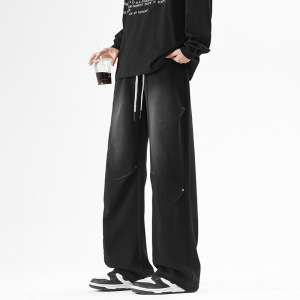 美式高街裤子男士春秋季2025新款潮牌宽松阔腿青少年黑色休闲长裤