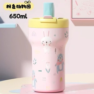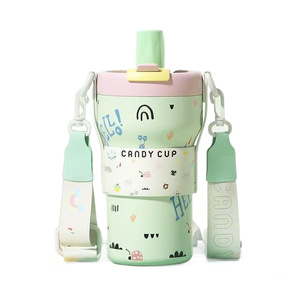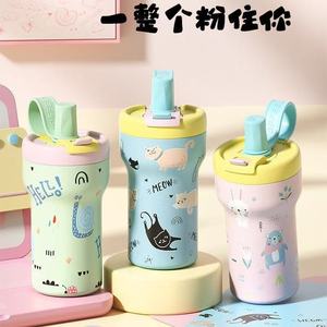 2025年糖果吸管直饮双层陶瓷内胆不锈钢保温杯小盖帽防尘可背可提