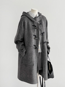 【旷野之上】24灰色牛角扣大衣小个子气质YZ13韩系风新品休闲百搭