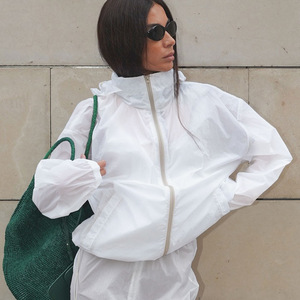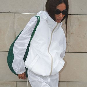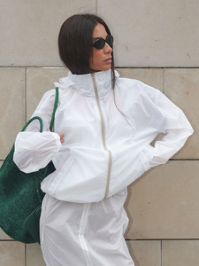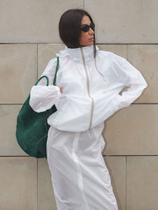 2025秋冬新款抽绳冲锋衣连帽外套设计感气质白色户外立领风衣跨境