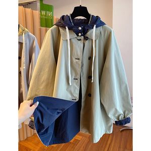 时尚冲锋衣连帽新款拼接撞色外套女春秋百搭韩版设计宽松夹克风衣