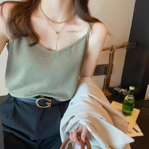白色吊带背心女夏外穿遮副乳宽肩带配西装打底内搭华夫格宽松彭泉