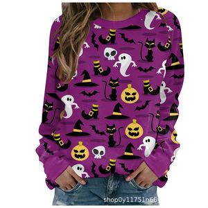 时尚3D数码印花万圣节幽灵图案女士运动衫 套头长袖卫衣厂家直供