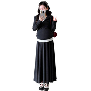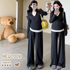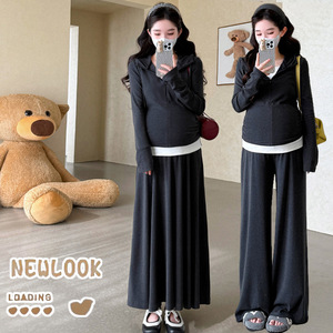 孕妇装2025新款休闲慵懒风松弛感假两件上衣半身裙克选阔腿裤套装
