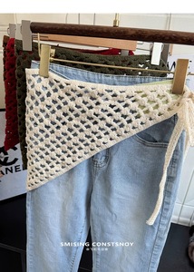 新款韩版ins手工镂空编织纯色三角巾女夏季时尚休闲百搭装饰屁帘