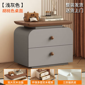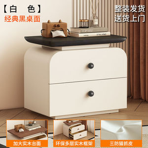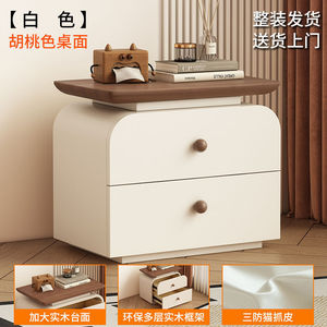 实木床头柜中古奶油风意式极简小户型简约现代2025新款卧室收纳