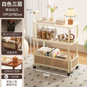 可移动沙发边几家用复古小茶几非实木小推车置物架客厅多层侧边柜