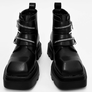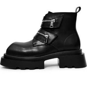 高级感方头牛皮男厚底增高中筒英伦风马丁靴小众高帮德比皮鞋男