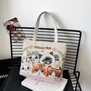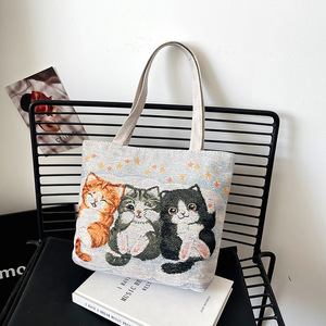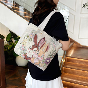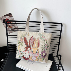 上班单肩包手拎便当包包双面金丝刺绣布包大容量民族风女托特小包