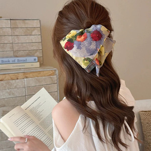 油彩繁花系气质大肠发圈女扎头发发绳发饰高级感洋气韩国时尚头绳