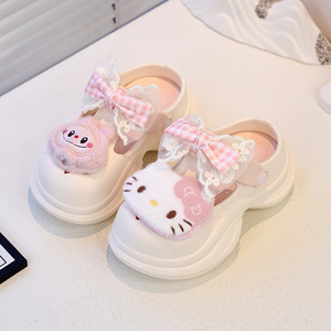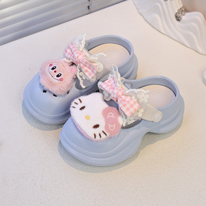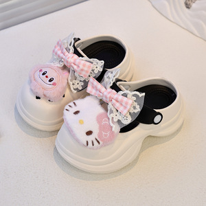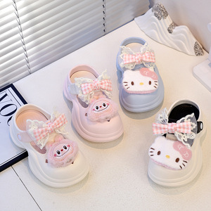 女童拖鞋2025夏季松糕卡通洞洞鞋厚底沙滩防滑一脚蹬包头两穿凉鞋