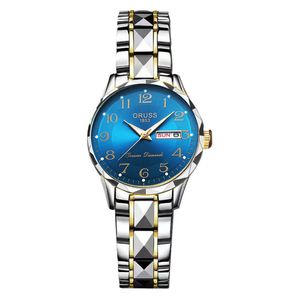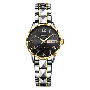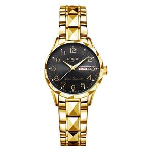 一件代发网红爆款数字中老年人简约女士手表钢带日历防水石英表