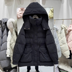 气质连帽收腰羽绒服女短款2025冬新款包扣加厚显瘦白鸭绒保暖外套