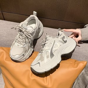舒适厚底老爹鞋女2025新款早秋网面透气运动鞋百搭增高休闲鞋女鞋