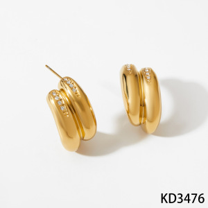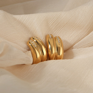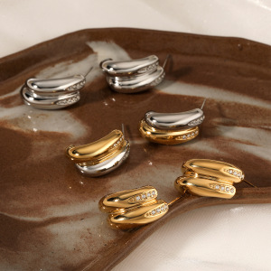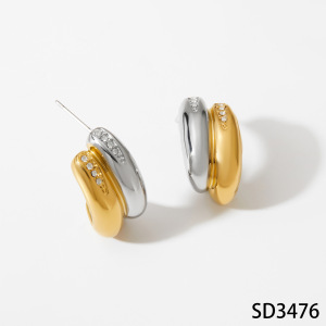 316不锈钢锆石双层拼接女士耳钉 韩系精致时尚优雅电镀高品质饰品
