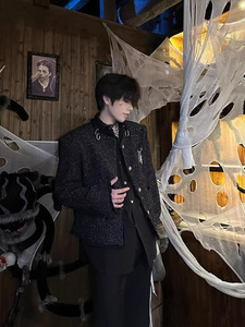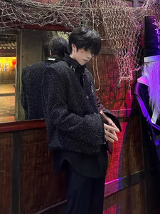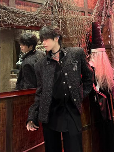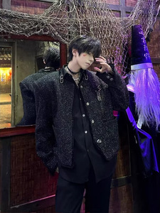 黑色垫肩小香风外套男款秋季高级感痞帅男模穿搭cleanfit短款夹克