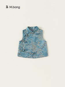 宥宝童装秋季女童汉服国风印花儿童上衣新中式衣服女孩子立领马甲