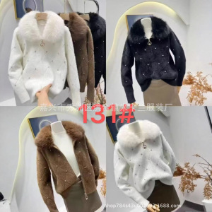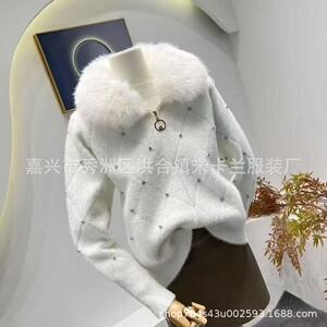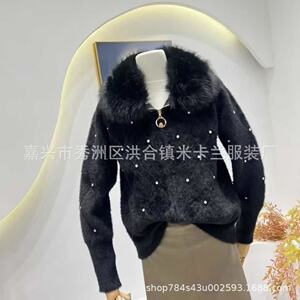 2025年新款镶钻环保毛领时尚气质百搭拉链秋冬女皮草外套针织开衫