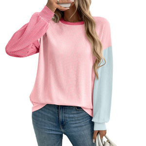 2025跨境欧美女装亚马逊秋冬休闲卫衣 宽松拼色圆领套头长袖T恤女