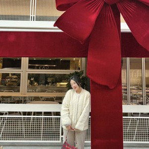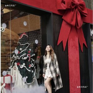 情人节丝绒布蝴蝶结巨型店铺橱窗户门头装饰节日元旦新年布置红色