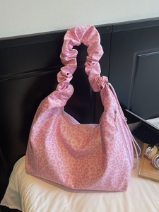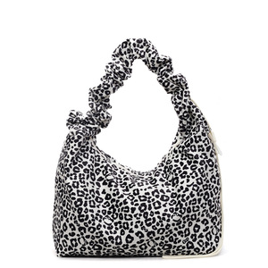 褶皱云朵豹纹帆布包包女2025跨境新款大容量通勤单肩斜挎托特女包