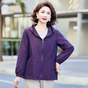 2025新款春秋女士夹克外套时尚洋气中老年妈妈装休闲连帽风衣外套
