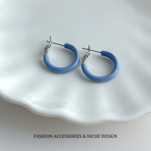 多巴胺彩色滴釉圈圈雾霾蓝耳环女小众清新百搭高级感气质耳圈耳钉