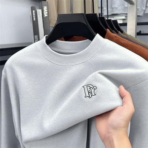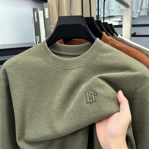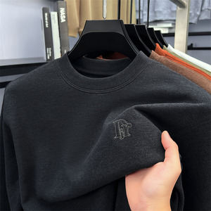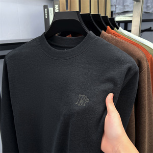 双面德绒7A抗菌加厚卫衣男士秋季新款圆领舒适保暖打底衫一件代发