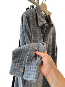复古水洗磨毛蓝色格子衬衫外套女春秋加厚宽松休闲外搭叠穿上衣潮