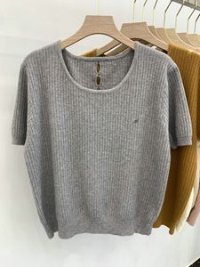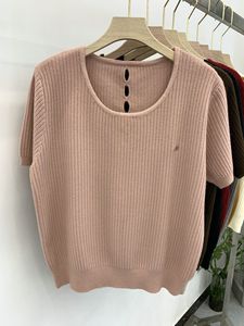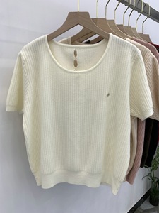 2025年夏季女装圆领短袖T恤时尚减龄后背镂空百搭气质款上衣薄款