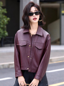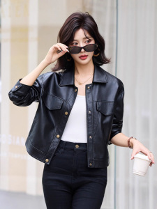 跨境海宁皮衣女式短款韩版时尚复古减龄绵羊皮夹克休闲外套潮批发