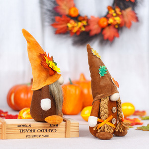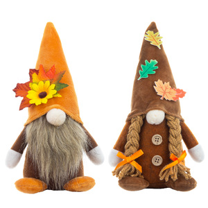 跨境新品感恩节丰收季枫叶鲁道夫无脸娃娃南瓜丰收节侏儒公仔摆件