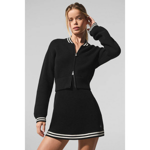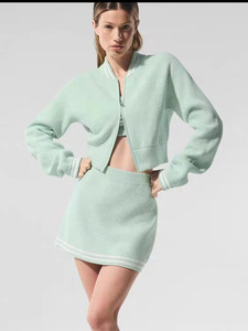 alo25秋季 撞色边饰棒球领口拉链针织外套裙子套装
