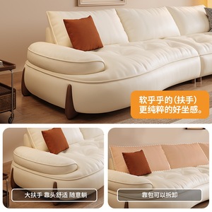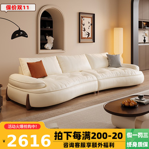 桐语特皮艺佛山真皮沙发意式极简客厅小户型中古风设计师创意弧形