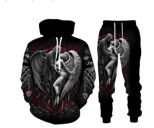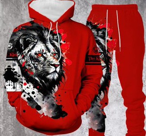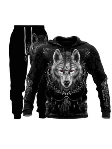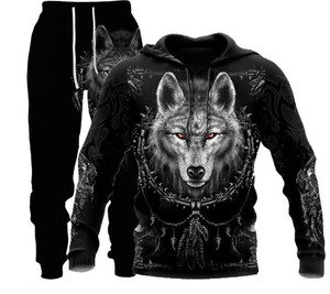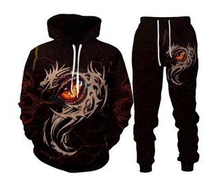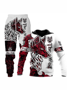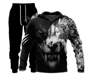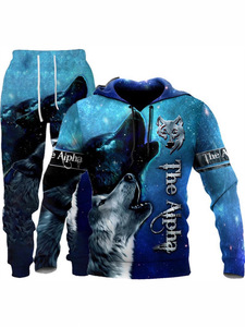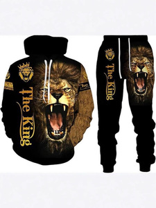 外贸跨境3D数码印花欧美男式长袖卫衣抽象艺术动物潮流连帽衫