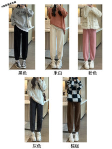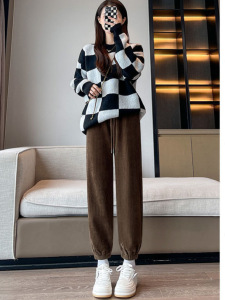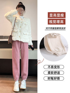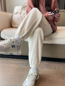 雪尼尔白色运动裤女春秋冬季2025新款束脚卫裤休闲加绒灯芯绒裤子