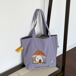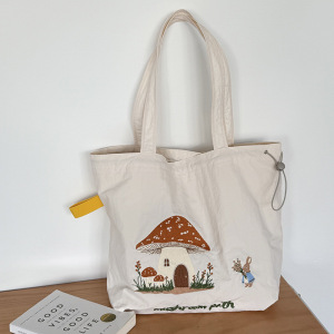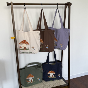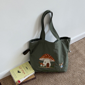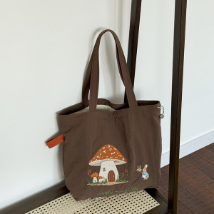 日系蘑菇屋刺绣单肩大容量包包女百搭便携学生书包托特包购物袋