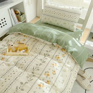 大学生宿舍床上三件套全棉纯棉单人床单被套四件套六床垫2025新款