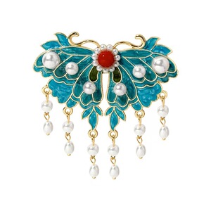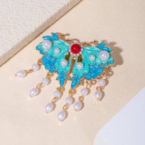 新中式烧蓝祥云珍珠发夹古风流苏边夹高级感夹子卡子发饰发卡头饰