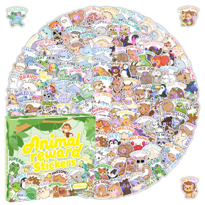 动物奖励贴纸-200张(烫金礼盒+镭射膜碎玻璃)