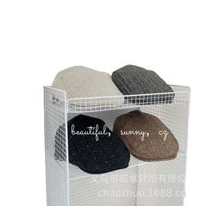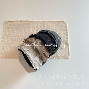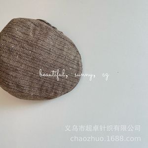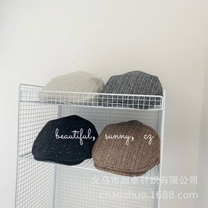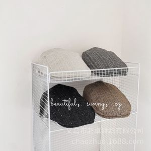 港式复古风时髦精穿搭毛呢棉麻格子前进帽儿童反戴贝雷帽