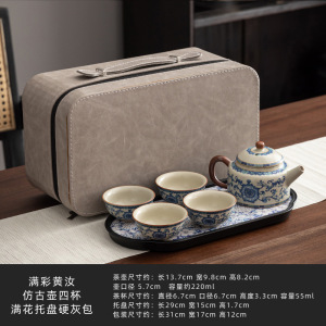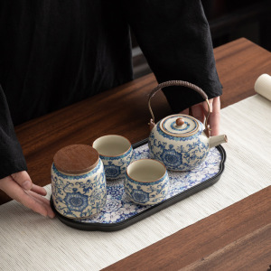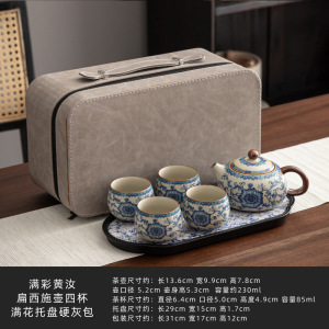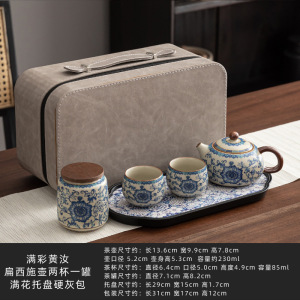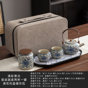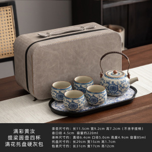 【青花黄汝】提梁圆壶(一壶四杯)+青花面茶盘/硬灰包