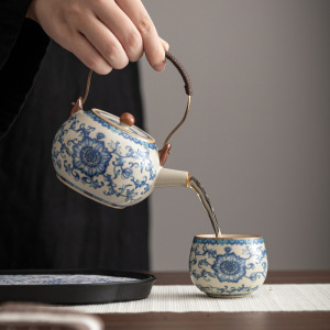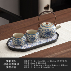 【青花黄汝】提梁圆壶(一壶两杯)+青花面茶盘