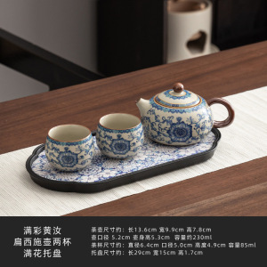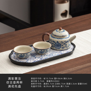 【青花黄汝】仿古壶(一壶两杯)+青花面茶盘/硬灰包