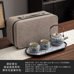 【青花黄汝】提梁圆壶(一壶两杯)+青花面茶盘/硬灰包