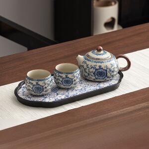 汝窑青花一壶两杯功夫茶具小型套装陶瓷茶壶茶盘一两人喝茶泡茶器