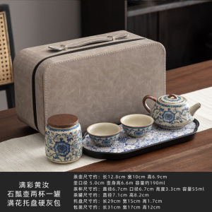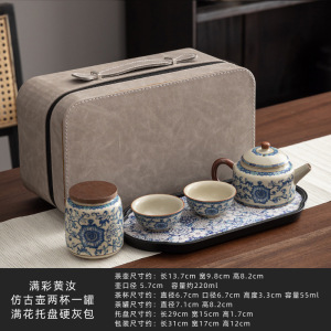【青花黄汝】提梁圆壶(一壶两杯一罐)+青花面茶盘/硬灰包