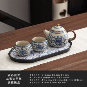【青花黄汝】龙蛋壶(一壶两杯)+青花面茶盘/硬灰包