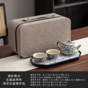 【青花黄汝】石瓢壶(一壶两杯一罐)+青花面茶盘/硬灰包